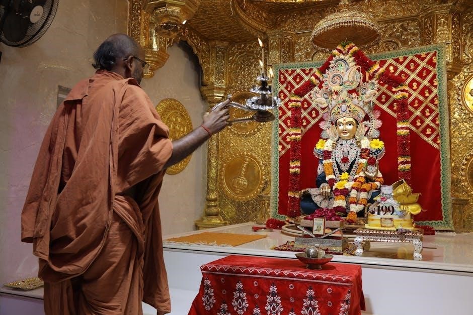 The Gayatri Chalisa holds a significant place in daily worship and meditation practices‚ particularly among devotees in Gujarat. Its verses‚ deeply rooted in spiritual wisdom‚ are often recited to invoke divine blessings and foster inner peace. Many followers incorporate the Gayatri Chalisa into their morning and evening rituals‚ using it as a means to connect with the divine and seek guidance.