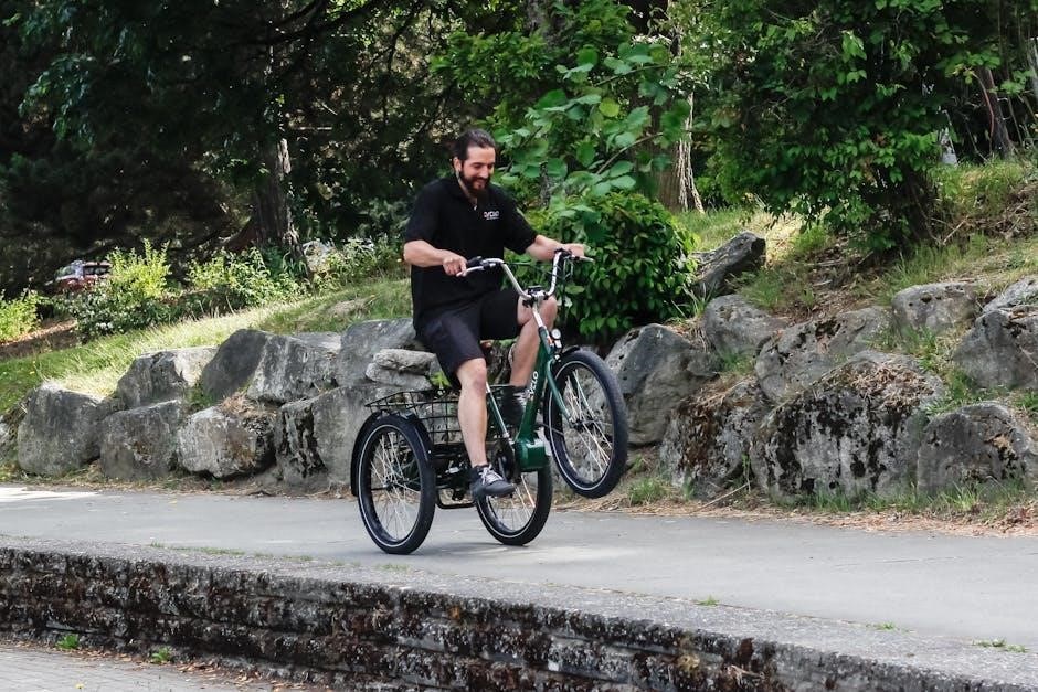 The manual provides detailed instructions on adjusting brake tension and alignment. Properly adjusted brakes ensure responsive stopping power. Ignoring brake maintenance can lead to accidents; prioritize this crucial safety check before each ride.